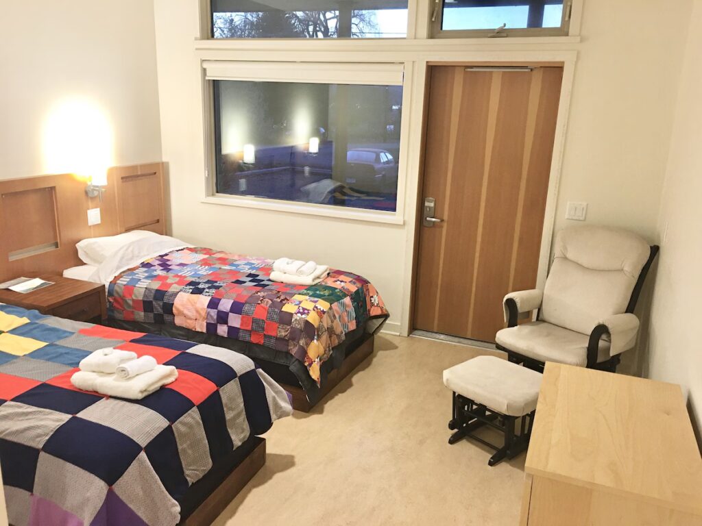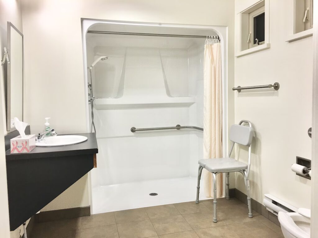 Three bedrooms are in each suite, sharing a spacious open-sitting, dining, and kitchen area. Each bedroom features two twin beds with ensuite bathroom. Constructed in 2009, these contemporary units are perfect for those who enjoy a blend of privacy combined with the opportunity for camaraderie and community. Orchard Court provides the best of both worlds. One room in each suite is barrier-free, including expanded doorways and a roll-in shower.